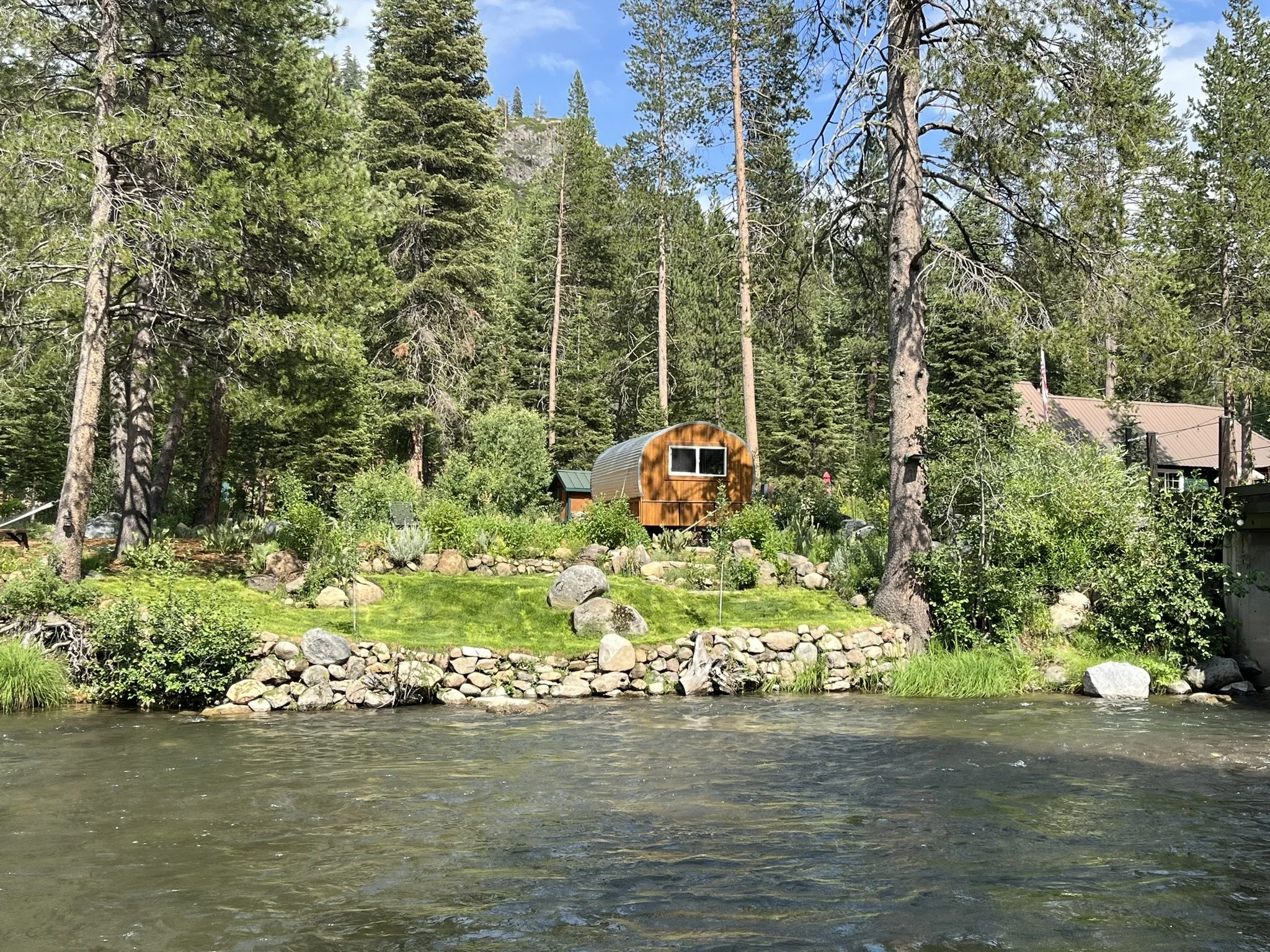 River Road Work Shop is a mobile studio built on a 18’ trailer and is a modern interpretation of an old sheperds wagon found in the mountain west. It sits over looking the Truckee River at the River Road family cabin. It provide a small but cozy home office away from the main cabin.